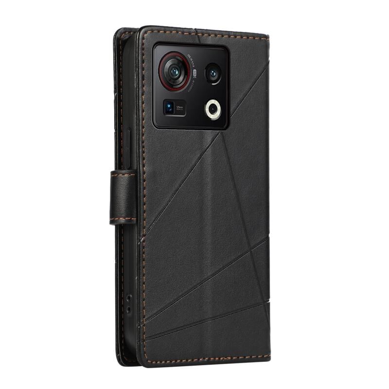 Θήκη τηλεφώνου ZTE nubia Z40S Pro από γνήσιο δέρμα PU με ανάγλυφη υφή και γραμμές (Μπλε)
