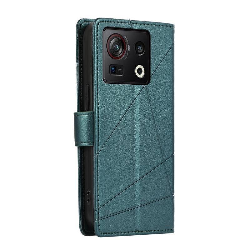 Θήκη τηλεφώνου ZTE nubia Z40S Pro από γνήσιο δέρμα PU με ανάγλυφη υφή και γραμμές (Μπλε)