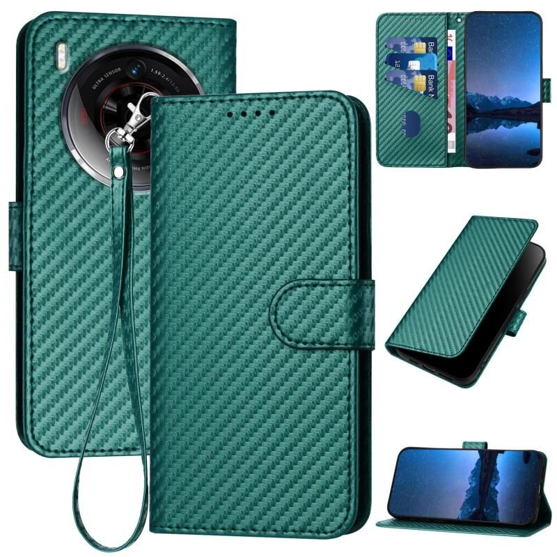 Θήκη τηλεφώνου από δέρμα με ανθρακονήματα και λουρί για ZTE nubia Z50S Pro YX0070 (Σκούρο πράσινο)