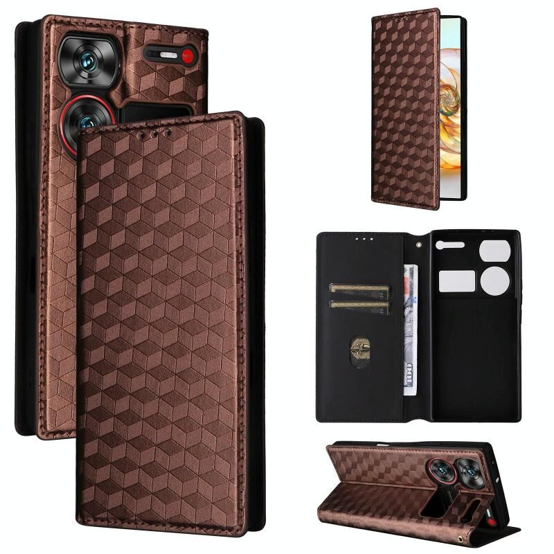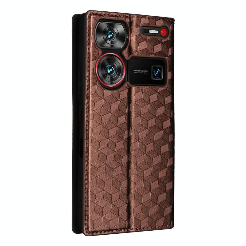 For ZTE nubia Z60 Ultra 5G Cubic Grid Texture Flip Leather Phone Case(Brown)