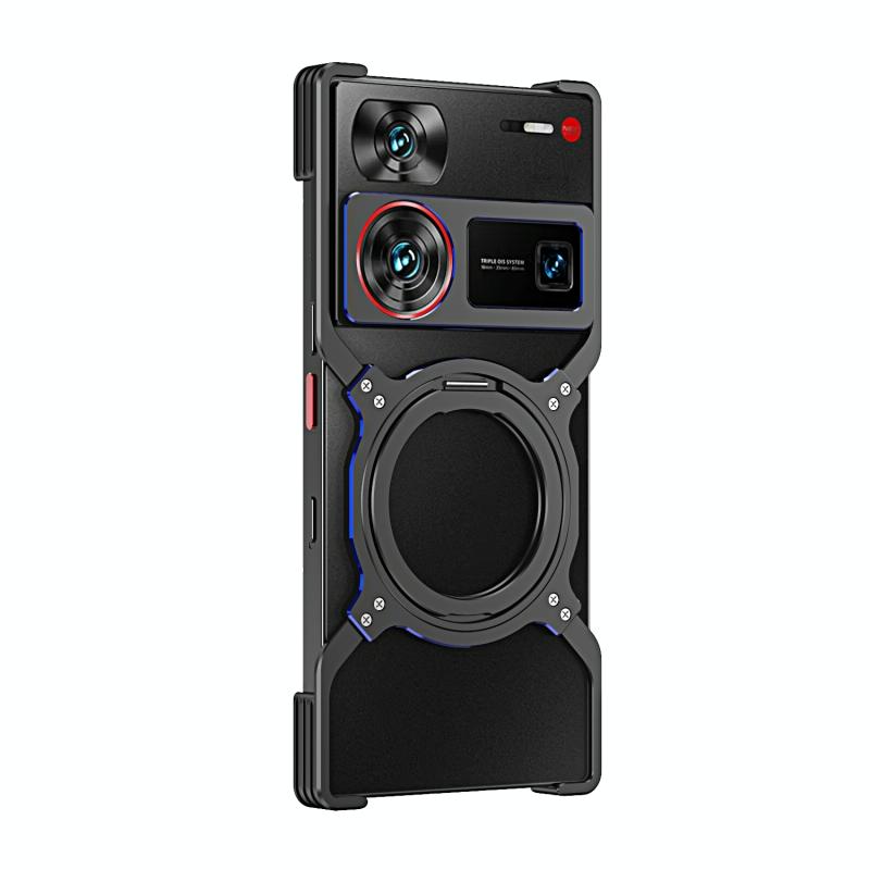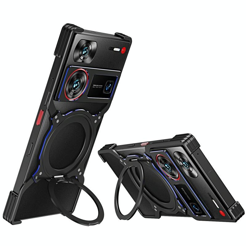 For ZTE nubia Z60 Ultra Mechanical Arm Borderless MagSafe Holder Metal Phone Case(Black Blue)