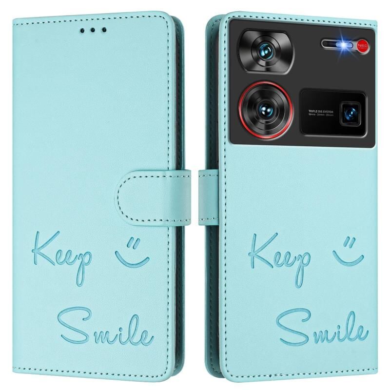 Θήκη τηλεφώνου από δέρμα με ανάγλυφο χαμόγελο και RFID για ZTE nubia Z60 Ultra (Μέντας Πράσινο)