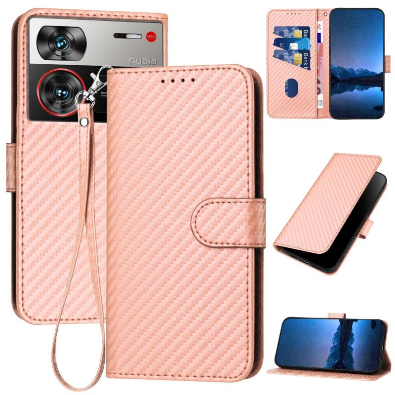 For ZTE nubia Z60 Ultra YX0070 Carbon Fiber Buckle Leather Phone Case with Lanyard(Pink)