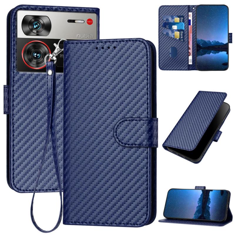 For ZTE nubia Z60 Ultra YX0070 Carbon Fiber Buckle Leather Phone Case with Lanyard(Royal Blue)