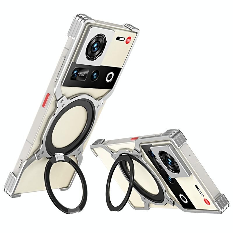 Θήκη τηλεφώνου από μέταλλο για ZTE nubia Z70 Ultra με μηχανικό βραχίονα, χωρίς πλαίσιο και με MagSafe (Μαύρο Κόκκινο)