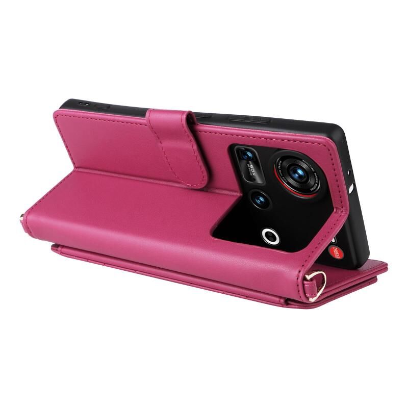 For ZTE nubia Z70 Ultra Multifunctional 6-Card Slots Leather Phone Case with Wrist Strap(Rose Red)