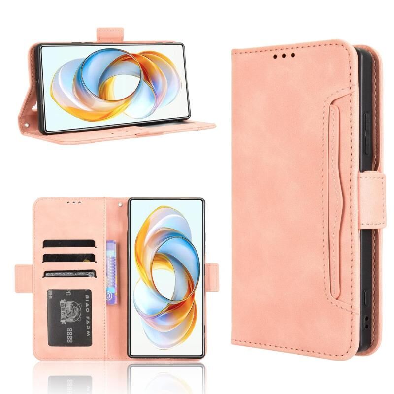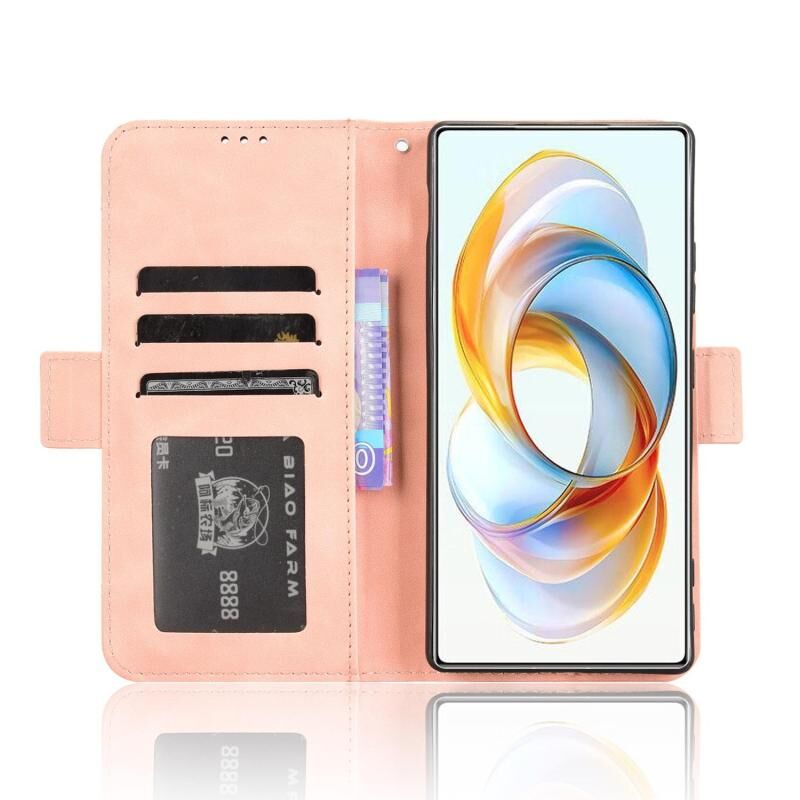 Θήκη τηλεφώνου από δέρμα με υφή μοσχαριού και θήκες καρτών για ZTE nubia Z70 Ultra (Ροζ)