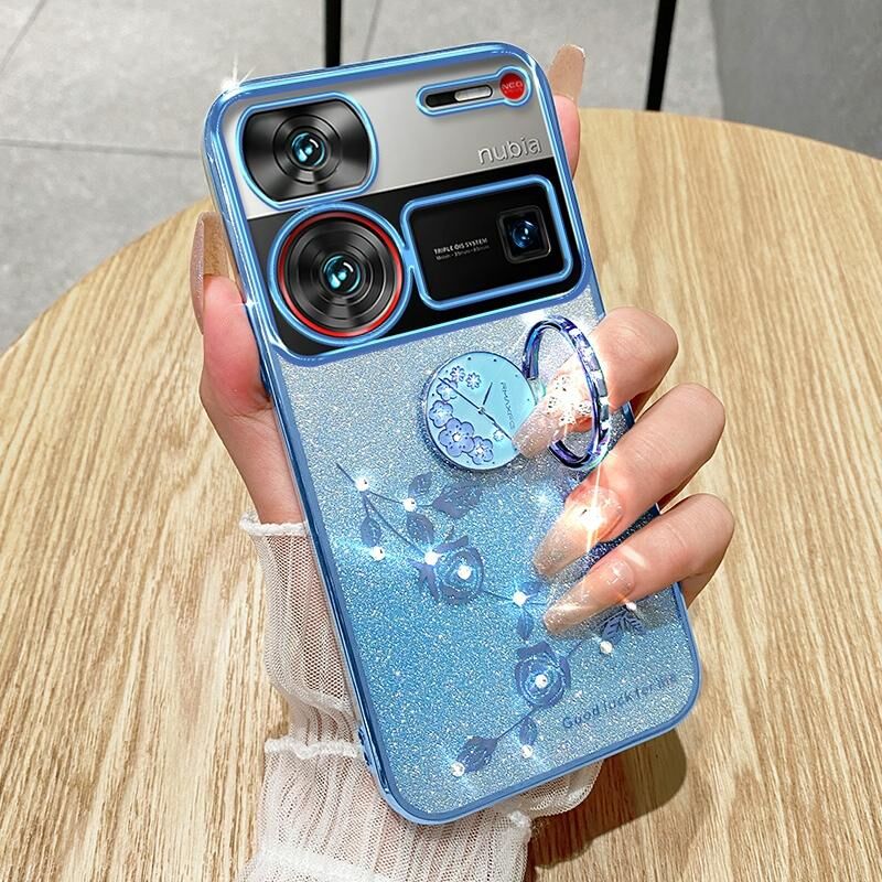 Για ZTE Nubian Z60 Ultra Gradient Glitter Immortal Flower Ring All-inclusive τηλέφωνο υπόθεση (ροζ)