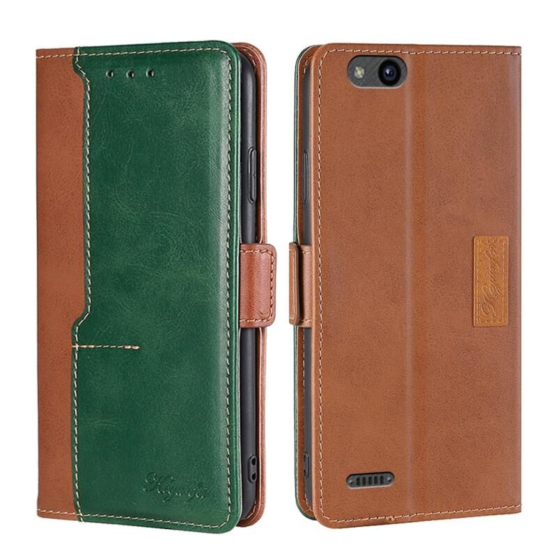 Για ZTE Tempo X/Vantage/Z839/N9137 Αντίθετο χρώμα πλευρά πόρπη δερμάτινη θήκη τηλεφώνου (ανοιχτό καφέ + πράσινο)