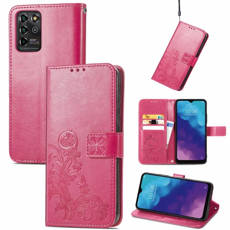 Για ZTE V30 Vita Four-leaf Clasp ανάγλυφη δερμάτινη θήκη με κορδόνι & υποδοχή για κάρτες & πορτοφόλι & κάτοχος (Ματζέντα)