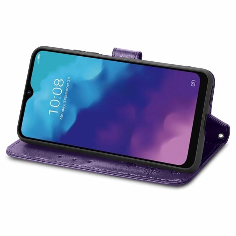Για ZTE V30 Vita Four-leaf Clasp ανάγλυφη δερμάτινη θήκη με κορδόνι & υποδοχή για κάρτες & πορτοφόλι & κάτοχος (μωβ)