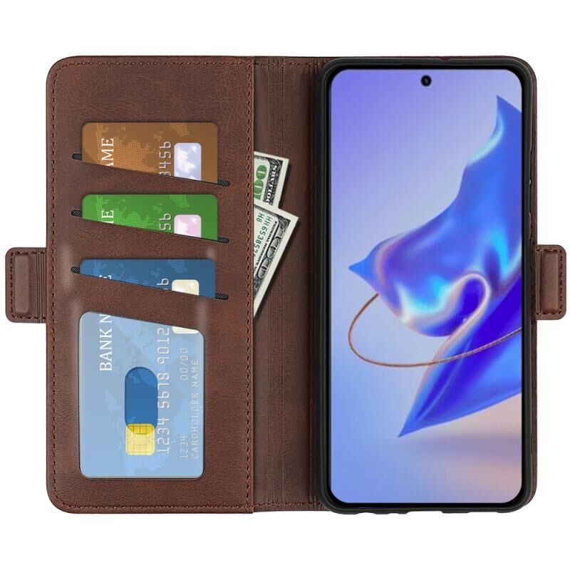 Για ZTE V40 Pro διπλής όψης μαγνητική αγκράφα Flip δέρμα τηλέφωνο υπόθεση (καφέ)