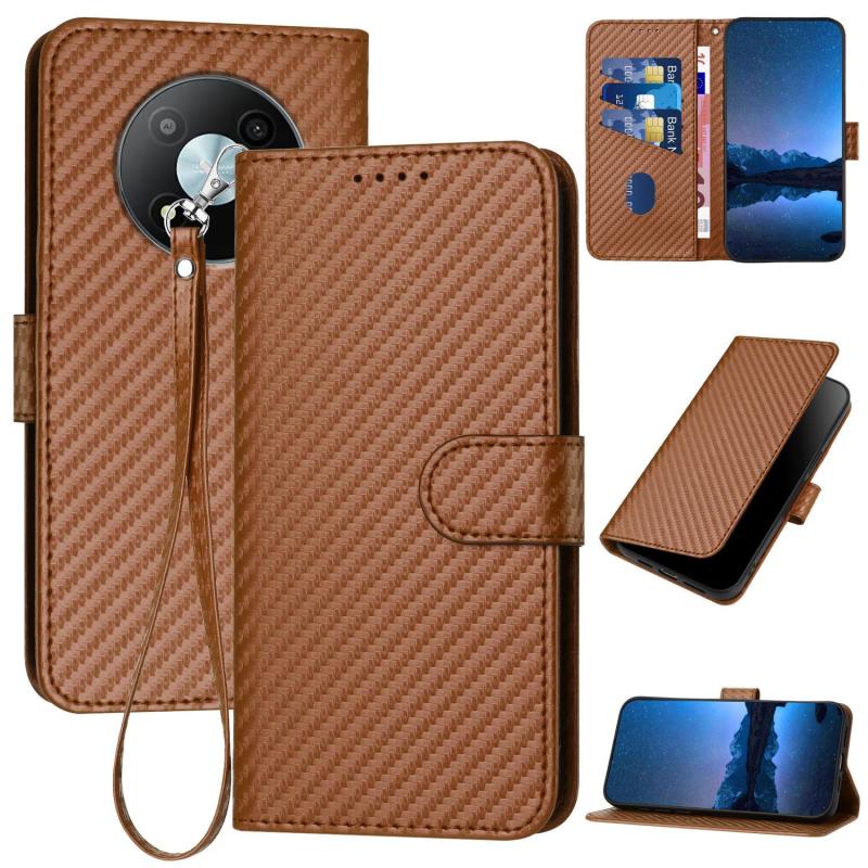 For ZTE Voyage 41 5G YX0070 Carbon Fiber Buckle Leather Phone Case with Lanyard(Coffee)