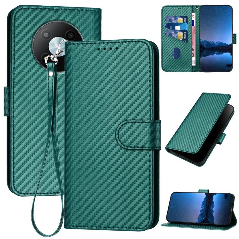 For ZTE Voyage 41 5G YX0070 Carbon Fiber Buckle Leather Phone Case with Lanyard(Dark Green)