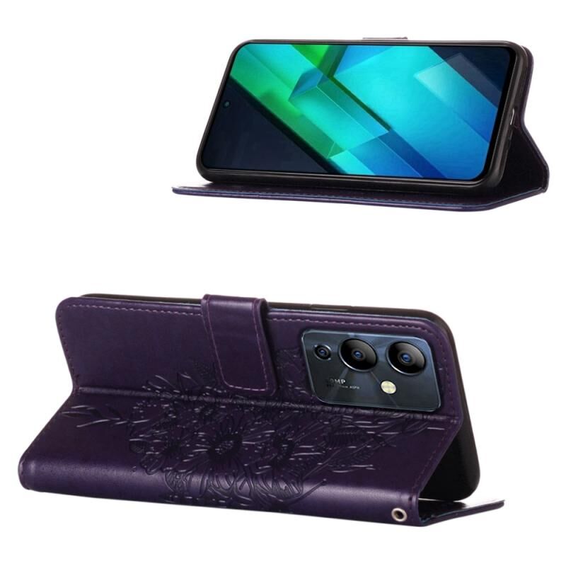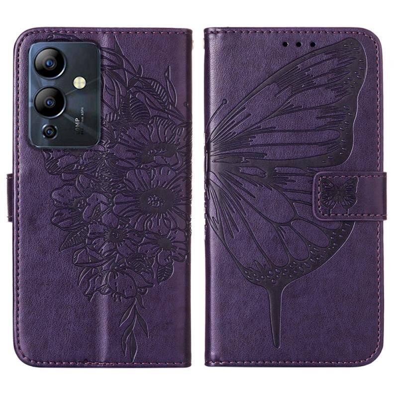 Θήκη τηλεφώνου από δέρμα με ανάγλυφο σχέδιο πεταλούδας για Infinix Note 12i 2023 / G85 (Μαύρο)