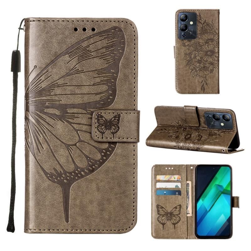 Θήκη τηλεφώνου από δέρμα με ανάγλυφο σχέδιο πεταλούδας για Infinix Note 12i 2023 / G85 (Μαύρο)