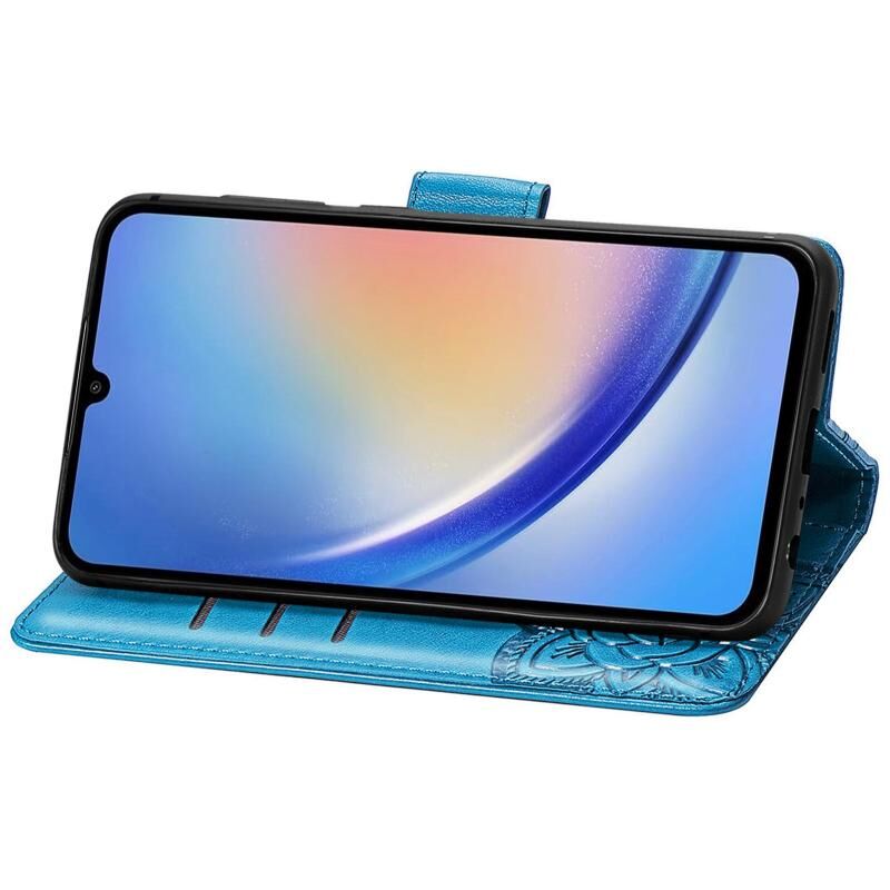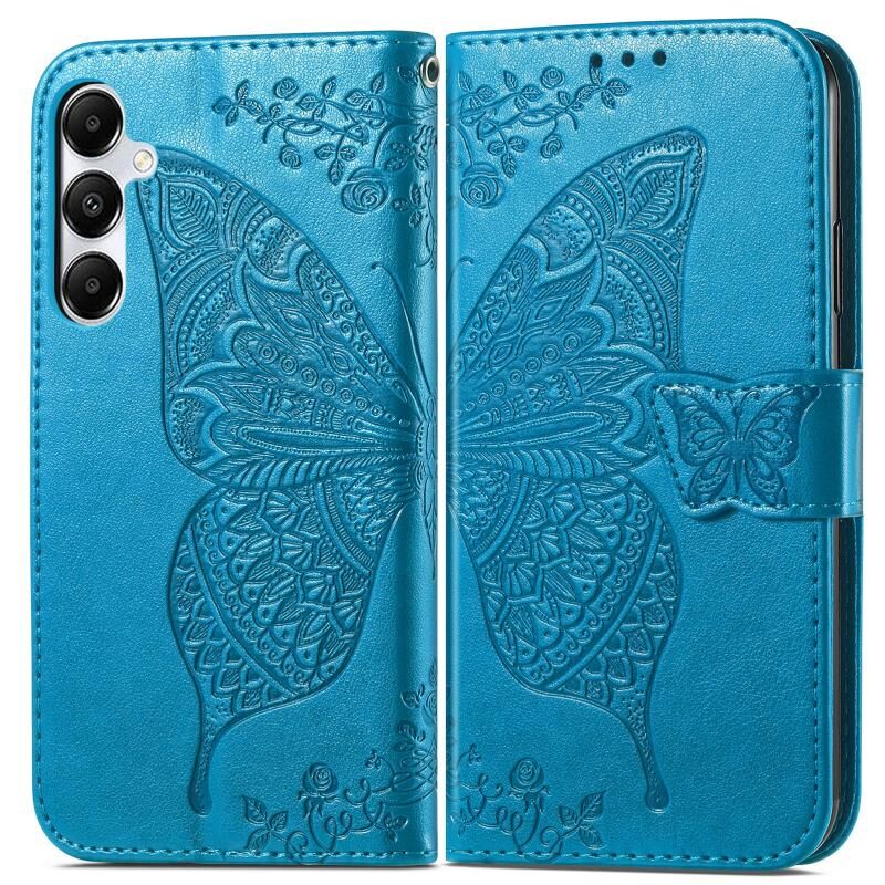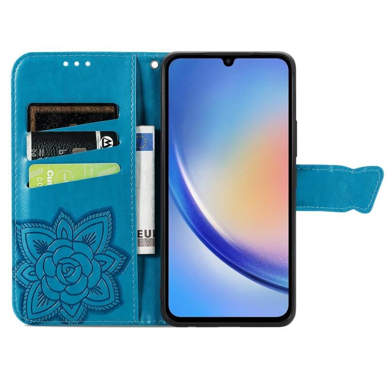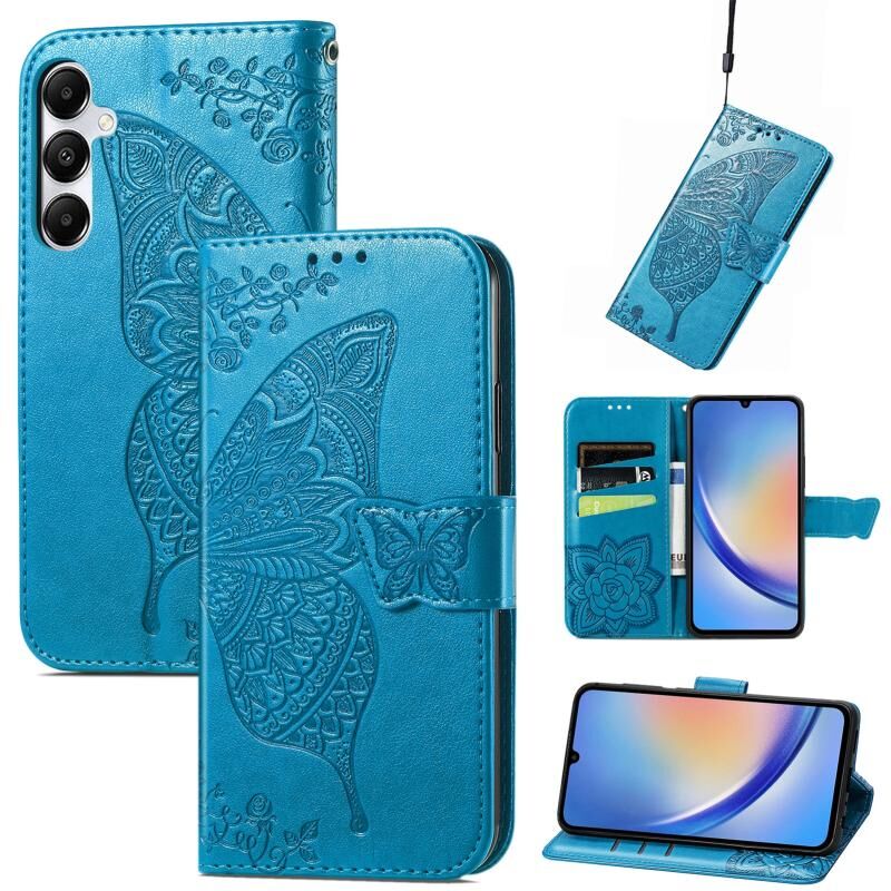 ForSamsung Galaxy A35 5G πεταλούδα αγάπη λουλούδι ανάγλυφο δερμάτινη θήκη τηλεφώνου (μπλε)
