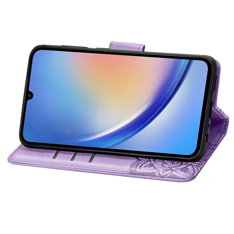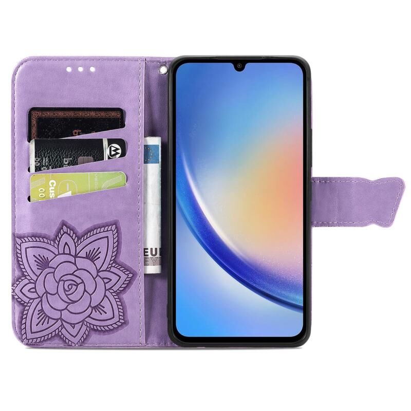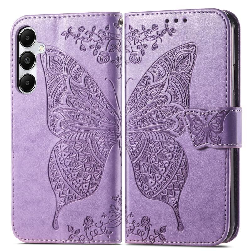 ForSamsung Galaxy A35 5G πεταλούδα αγάπη λουλούδι ανάγλυφο δερμάτινη θήκη τηλεφώνου (Light Purple)