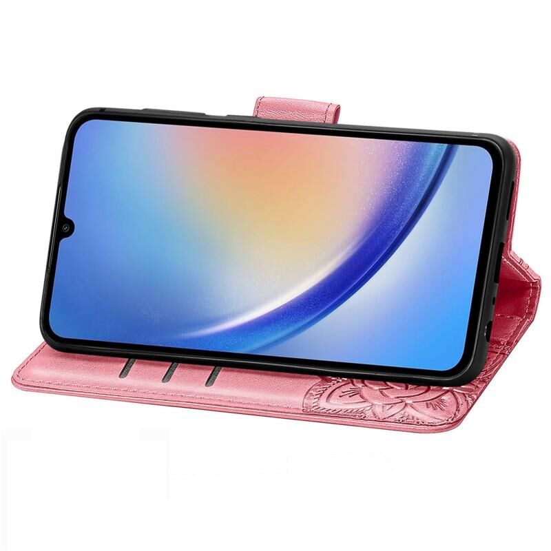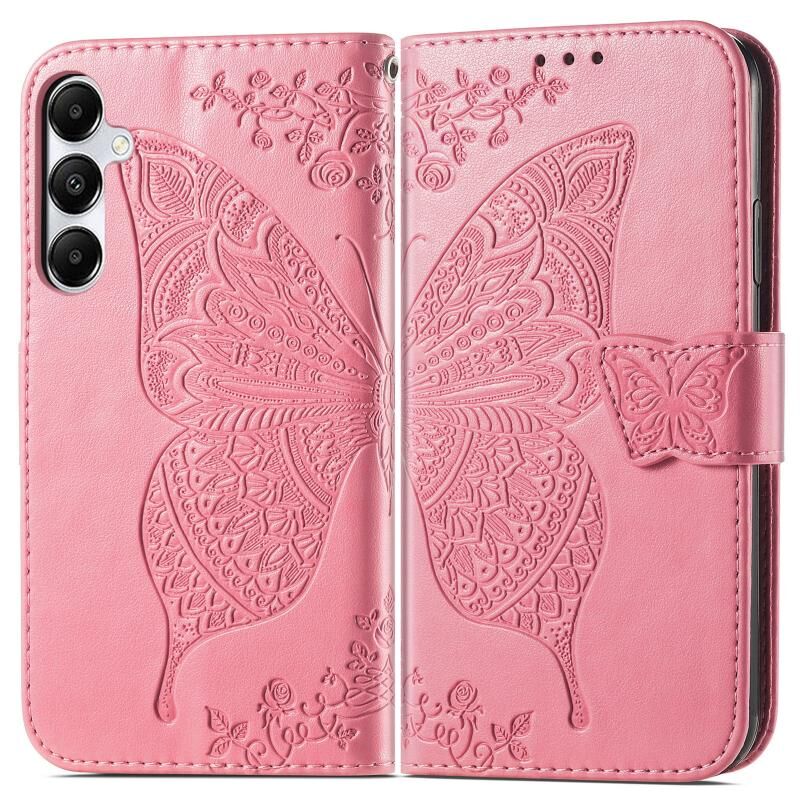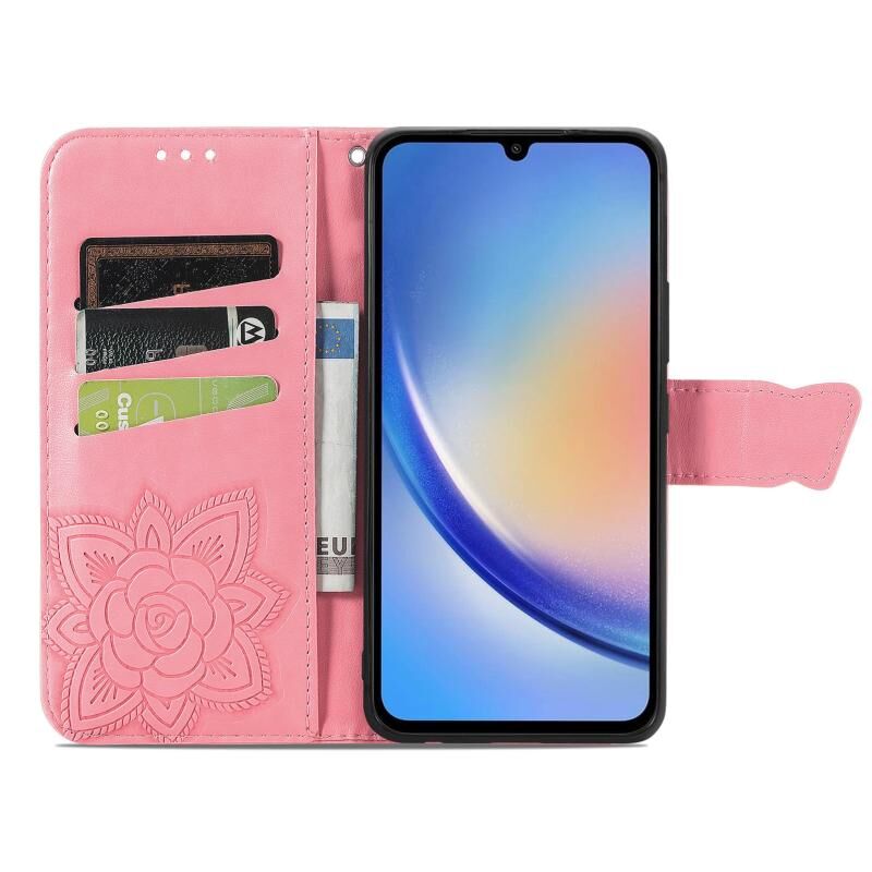 ForSamsung Galaxy A35 5G πεταλούδα αγάπη λουλούδι ανάγλυφη δερμάτινη θήκη τηλεφώνου (ρόζ)