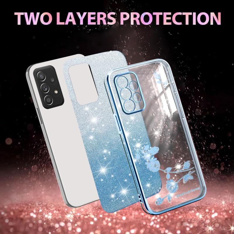 Θήκη τηλεφώνου για Samsung Galaxy A52 5G, με διακριτικό σχέδιο λαμπερού λουλουδιού και πλήρη κάλυψη (Μωβ)