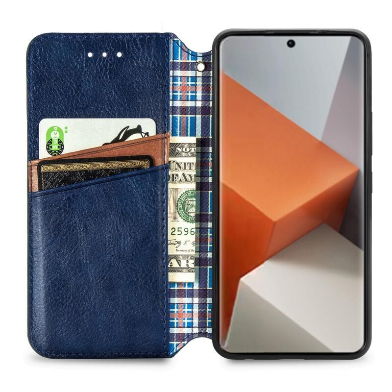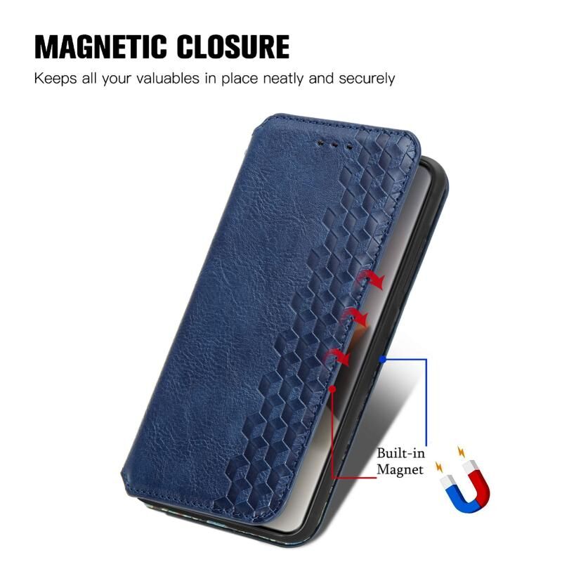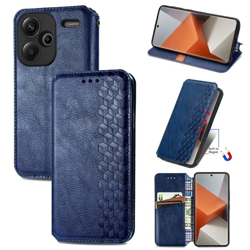 ForXiaomi Redmi Note 13 Pro+ Cubic Grid Pressed μαγνητική δερμάτινη θήκη τηλεφώνου (μπλε)