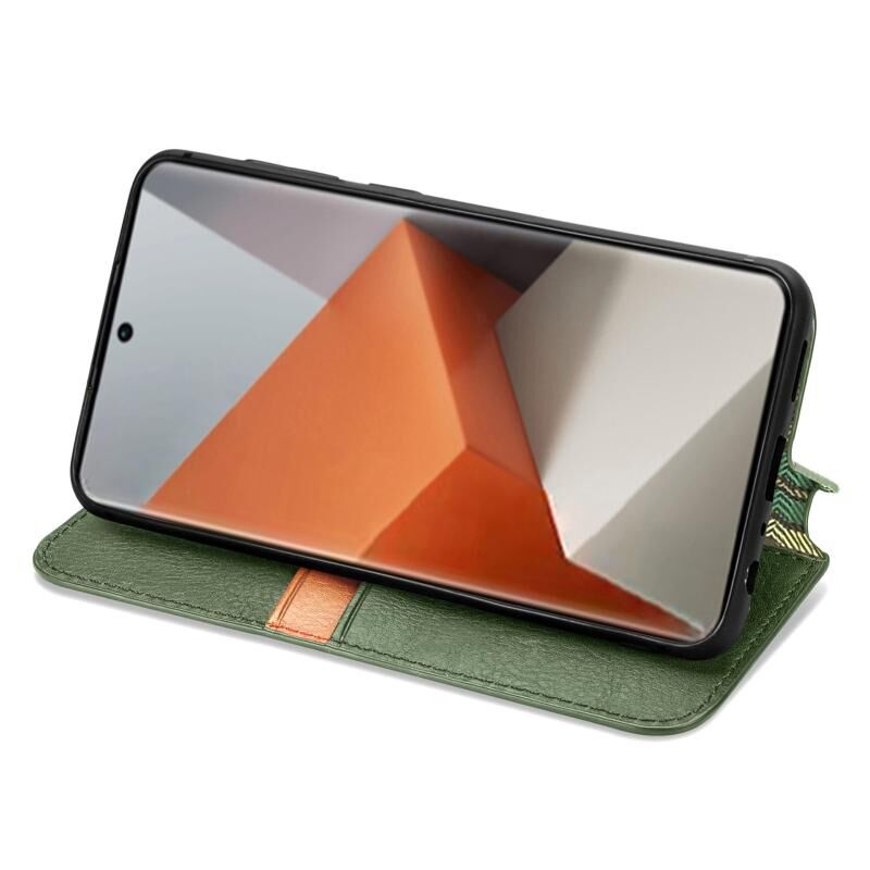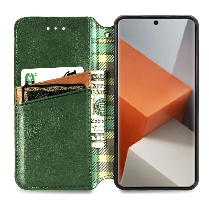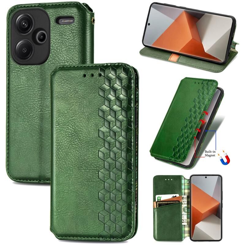ForXiaomi Redmi Note 13 Pro + Κυβικό πλέγμα πιέζεται μαγνητική δερμάτινη θήκη τηλεφώνου (πράσινο)
