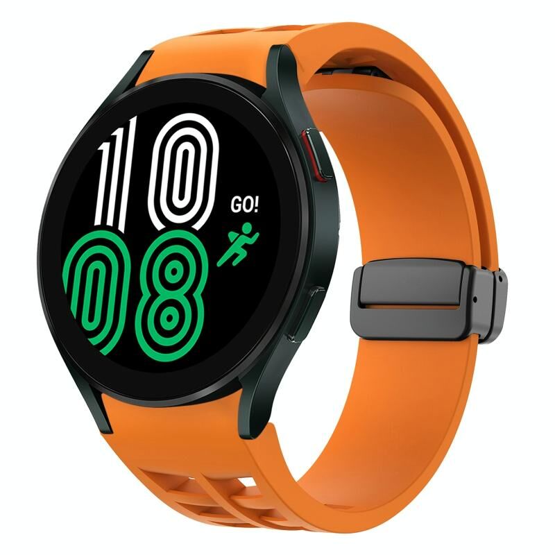 Fou Samsung Galaxy Watch 4 40 / 44mm Richard Magnetic Folding Black Buckle Silicone Watch Band (Πορτοκαλί)
