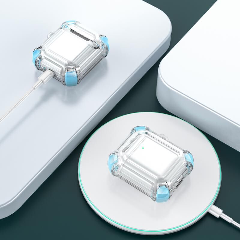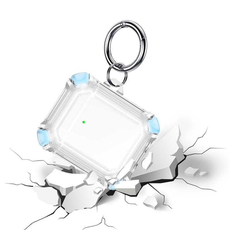Four Corners Anti-fall Wireless Earphone Dual-color PC Protective Case with Hook For AirPods 1/2(Sky Blue)