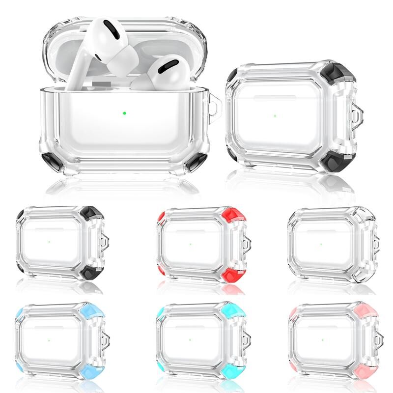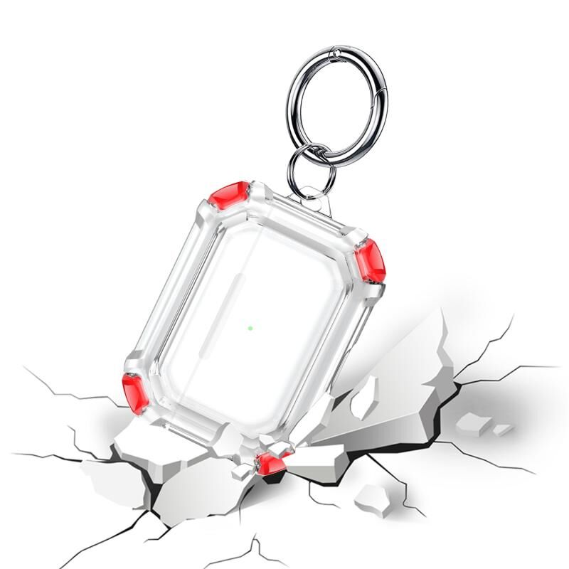 Four Corners Anti-fall Wireless Earphone Dual-color PC Protective Case with Hook For AirPods Pro(Red)