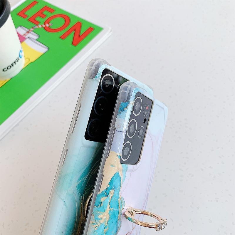 Θήκη τηλεφώνου Four Corners Anti-Shattering Gold Marble IMD με μεταλλική βάση δακτυλιδιού και ρητίνες για Samsung Galaxy S20 (Μαύρο LQ1)