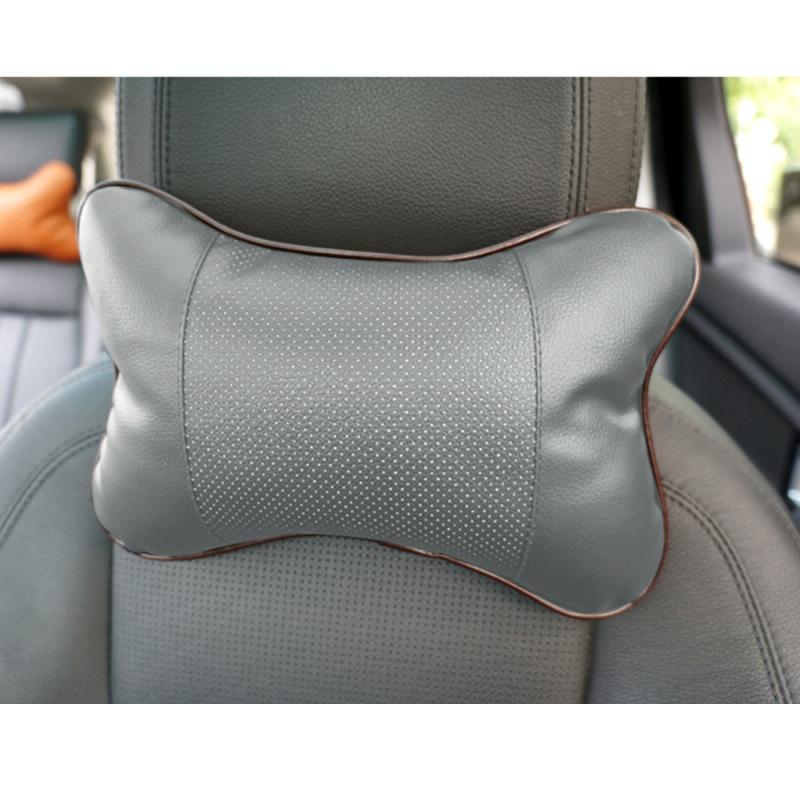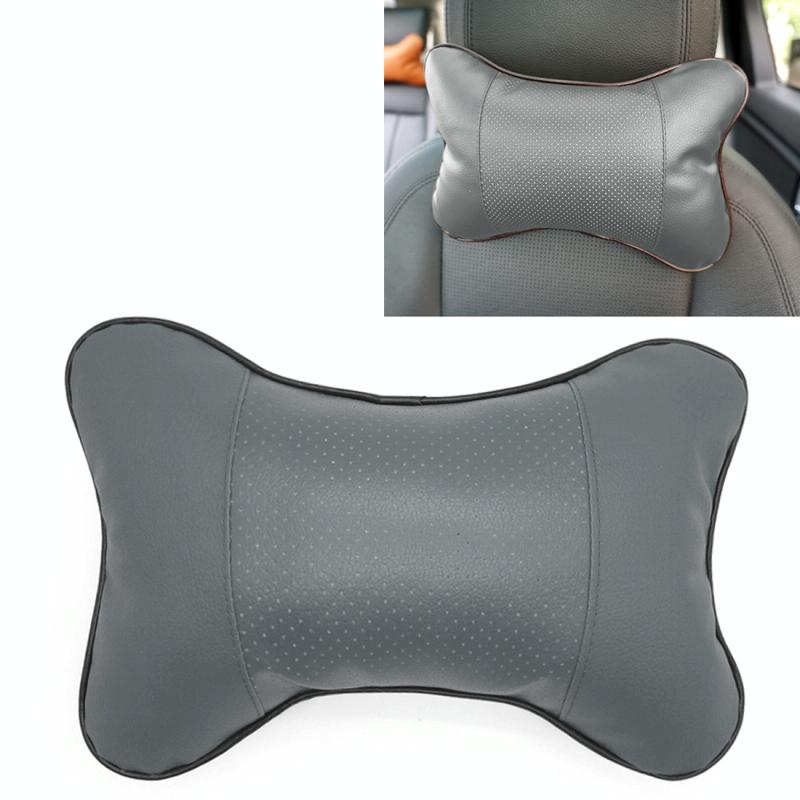 Four Seasons Breathable Leather Surface Car Neck Pillow Head Pillow(Grey)