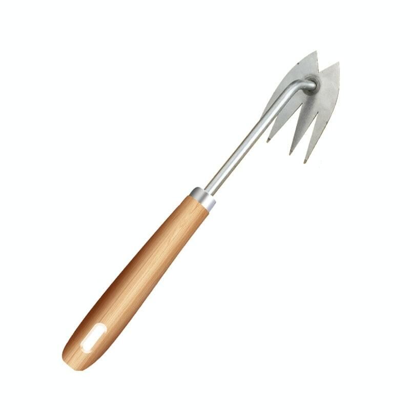 Εργαλείο αφαίρεσης ζιζανίων διπλού σκοπού με τέσσερα δόντια Κηπουρική τσουγκράνα ξεριζωτικού εργαλείου, Μήκος: 29cm V-κεφαλή ξύλινη λαβή