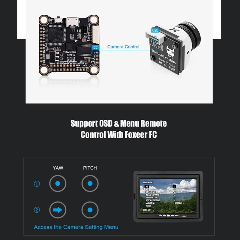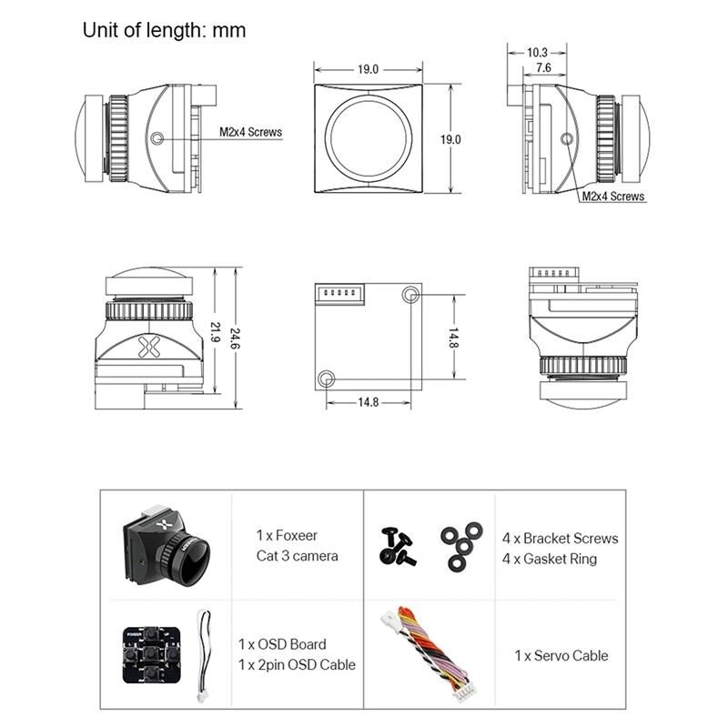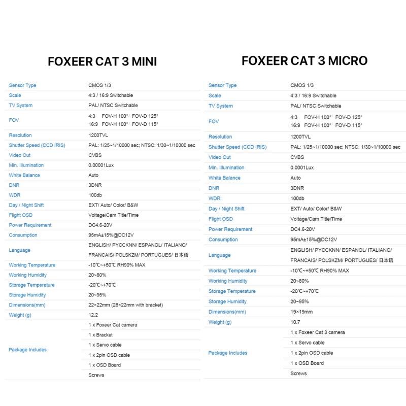 2. Mini FPV camera: Foxeer Cat 3 Micro size 19x19mm, FOXEER Cat 3 Mini size 22 x 22 mm