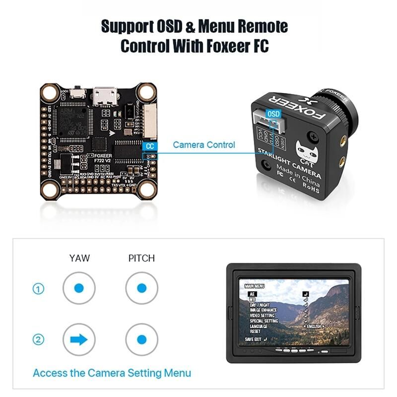 2. Mini FPV camera: Foxeer Cat 3 Micro size 19x19mm, FOXEER Cat 3 Mini size 22 x 22 mm
