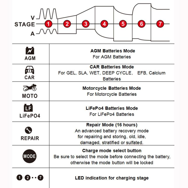 FOXSUR 12A / 12V / 24V Car / Motorcycle 7-stage Lead-acid Battery AGM Charger, Plug Type:EU Plug(Yellow) (FOXSUR)