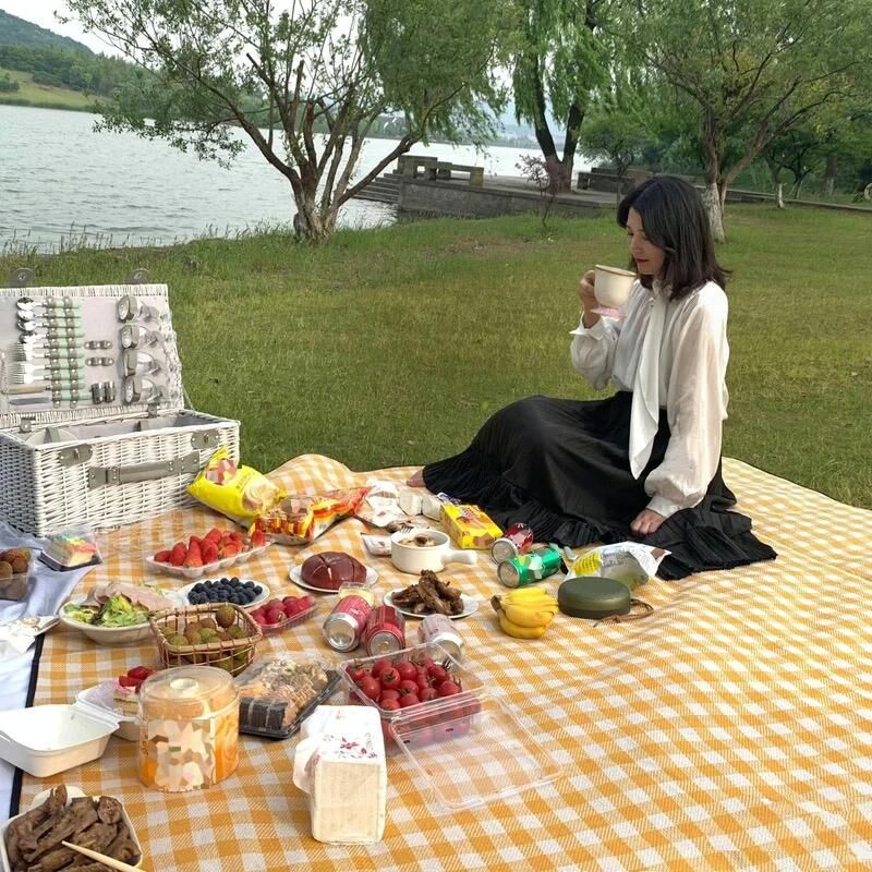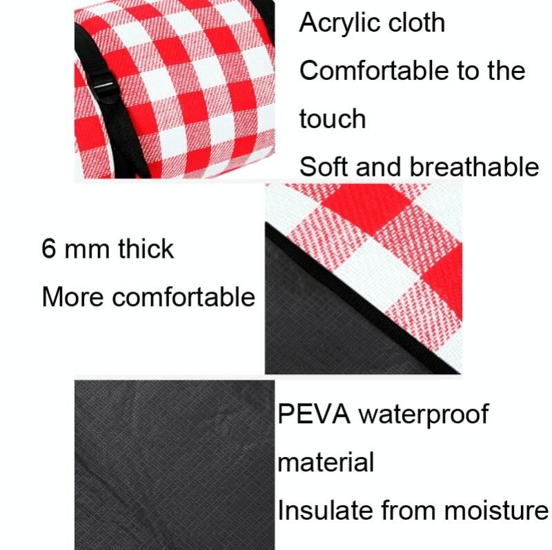 FP1409 6 χιλιοστά πάχυνση υγρασία-απόδειξη παραλία Mat υπαίθρια κάμπινγκ σκηνή χαλί με τσάντα αποθήκευσης 200x200cm (μαύρο γκρι λευκό πλέγμα)