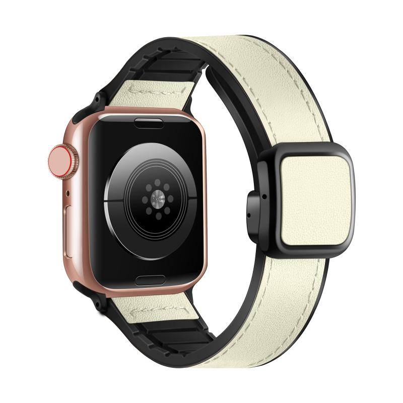 Για Apple Watch Series 7 41mm Μαγνητικό Λουράκι PU Σιλικόνης (Μπεζ)