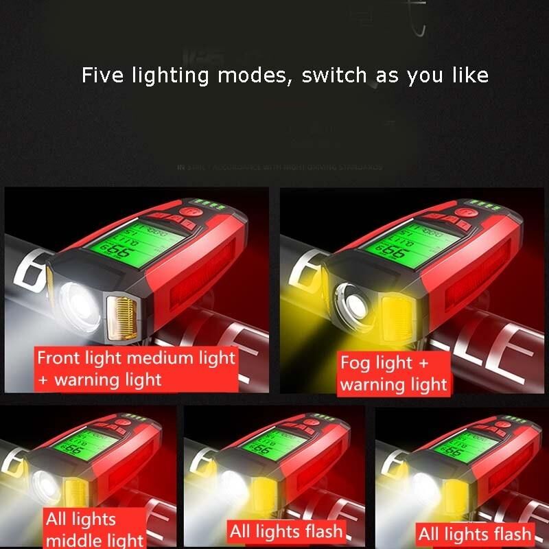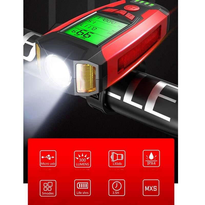 1. Λειτουργία ήχου: πέντε 2. Ρυθμός ντεσιμπέλ ήχου: 130 ντεσιμπέλ 3. Λαμπτήρες: XPG+COB+2835 x 2 τεμ. 4. Κύριο φως/φως ομίχλης: 300 lumens/30 lumens 5. Μπαταρία: Πολυμερής μπαταρία λιθίου 1200 mAh (με προστατευτική πλακέτα) 6. Χρόνος φόρτισης: περίπου 2,5 ώρες 7. Διαστάσεις: 101,5 x 49,5 x 24,5 mm 8. Υλικό: ABS+GPPS 9. Φωτεινότητα ενδείκτη μπαταρίας: 100%-75%-50%-25% 10. Πλήρες φως ποδηλάτου με μπροστινό φως/φως ομίχλης/φως προειδοποίησης, 130 ντεσιμπέλ με πέντε ηχητικά εφέ και νέα λειτουργία συναγερμού 11. Η μεγάλη οθόνη μπορεί να συνδεθεί με ενσύρματο κοντέρ για την παρατήρηση της ταχύτητας, του χρόνου, της ταχύτητας, ολόκληρου του ταξιδιού, μίας διαδρομής, κ.λπ.