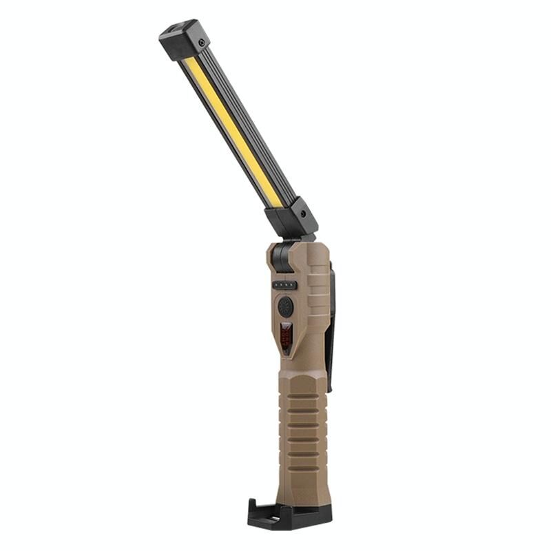 14. Features: Battery display, double-sided COB, 3 light source options, USB output can be used as a power bank, can be folded up and down 180 degrees, with magnets and hidden hooks, convenient for vertical and handheld use, yellow light penetration is better , red light warning