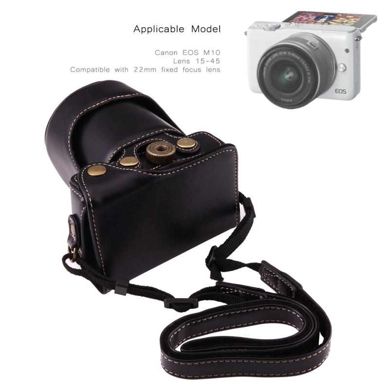 Full Body Camera PU Leather Case Bag with Strap for Canon EOS M10(Black)