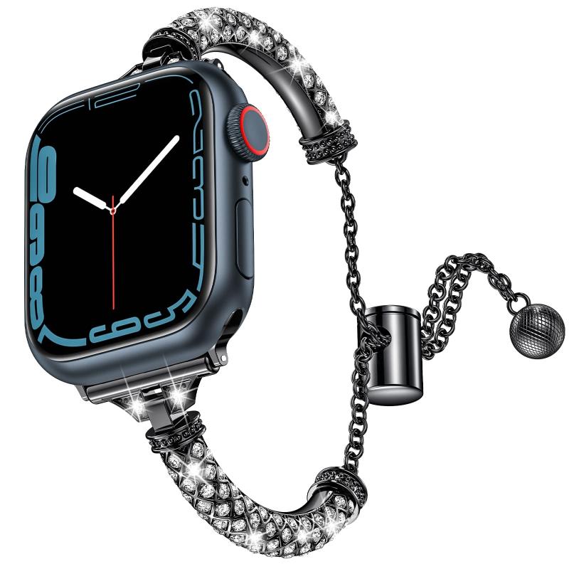 Μπρασλέ για Apple Watch Series 8&7 41mm / SE 2&6&SE&5&4 40mm / 3&2&1 38mm (Ασημί) με πλήρη διαμάντια από μέταλλο. (Μαύρο)