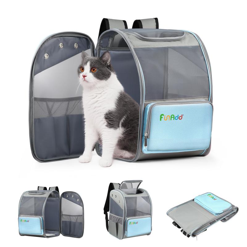 FUNADD Fold Breathable Pet Backpack Outdoor Shoulders Cat Bag(Blue) (FunAdd)