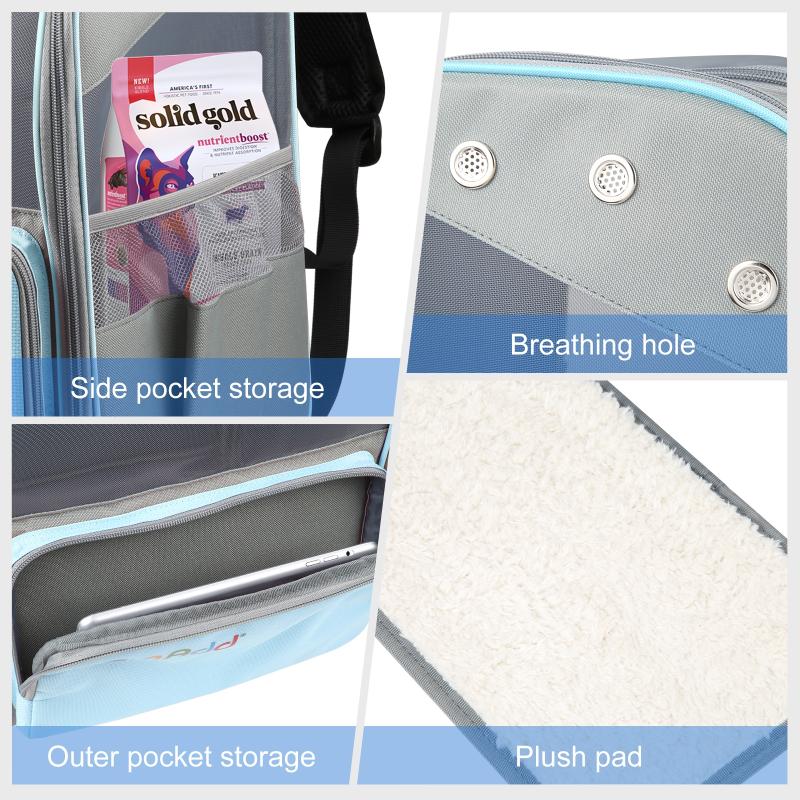 7. Large Side Pocket: The airline approved soft-sided cat backpack have a large pocket on side that can store pet treats, supplies, diaper and poop bag etc.