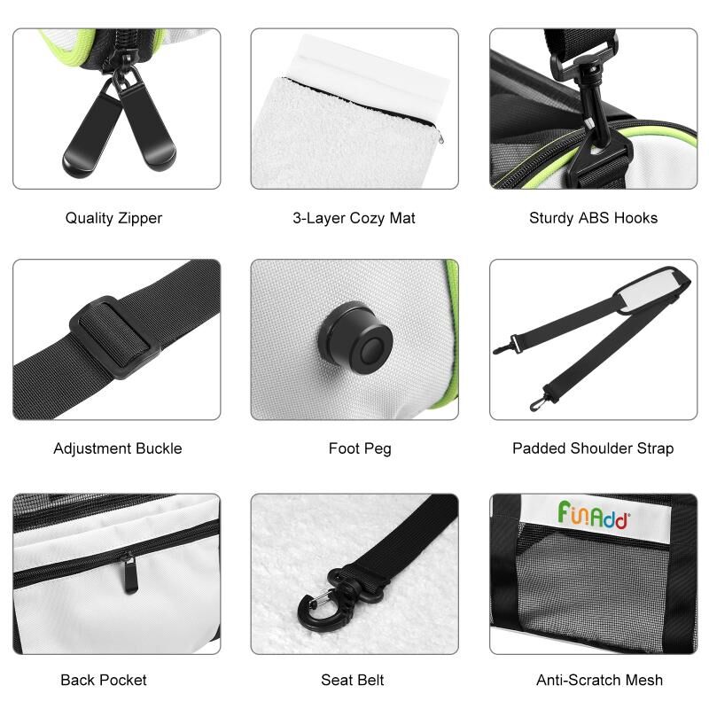 6. Sturdy: Design with two iron frame provides enough support to prevent the top from sagging. This pet carrier floor mat has a built-in panel that is sturdy and durable to prevent the base from sagging when carried. The bottom is equipped with soft cushions for your pet to rest.