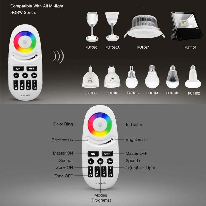 FUT095 2.4G Miboxer Button Type RGBW RF 4-Zone Wireless LED Remote Controller for LED RGBW Bulb or Strip