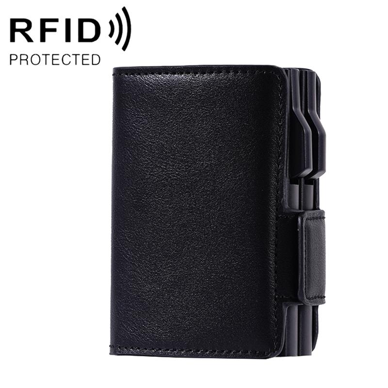 FY2403 RFID Anti-magnetic Crazy Horse Texture PU Dual Box Card Bag(Black)