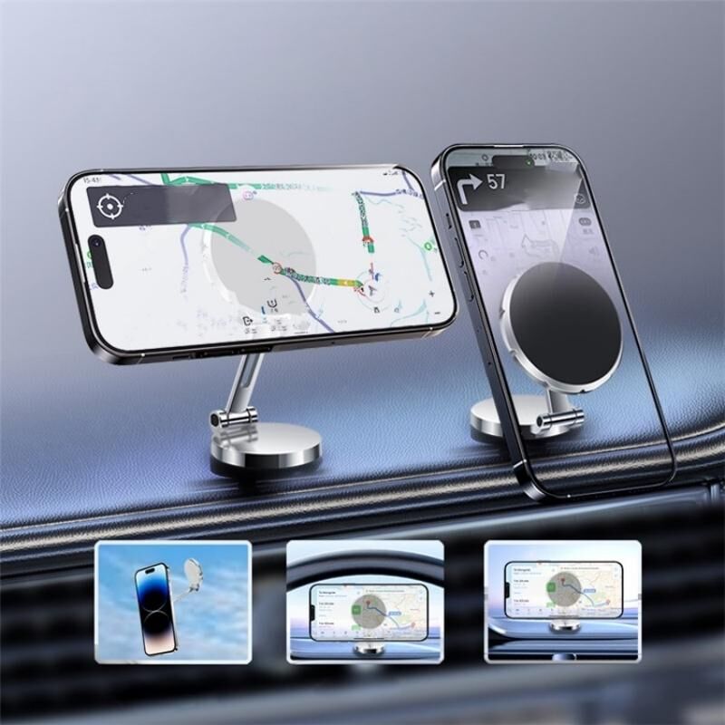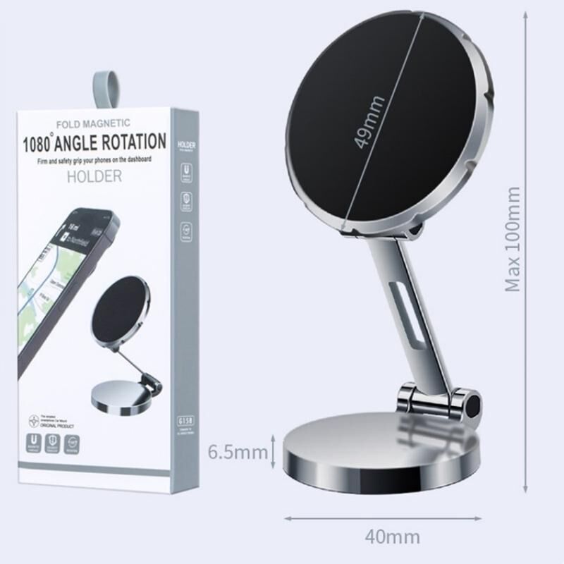 G158 360-Degree Rotating Metal Phone Stand Dashboard Folding Magnetic Car Mount(Gray)