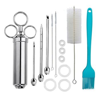 Stainless Steel Spice Syringe Barbecue Tool Turkey Needle Set(Blue)