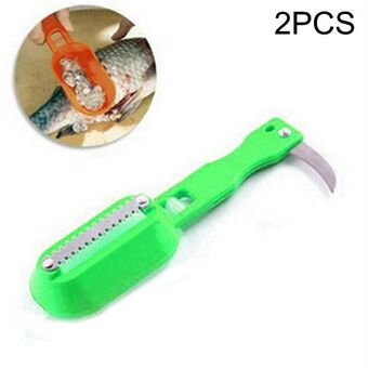2 PCS Kitchen Essential Fish Scraper Fish Scale Planing Knife with Cover (Green)