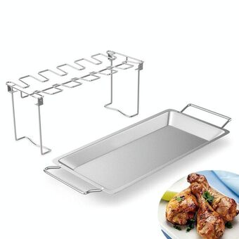 Ανοξείδωτο ατσάλινο ράφι μπάρμπεκιου για φτερούγες κοτόπουλου με δοχείο στάγδην (ασημί)
